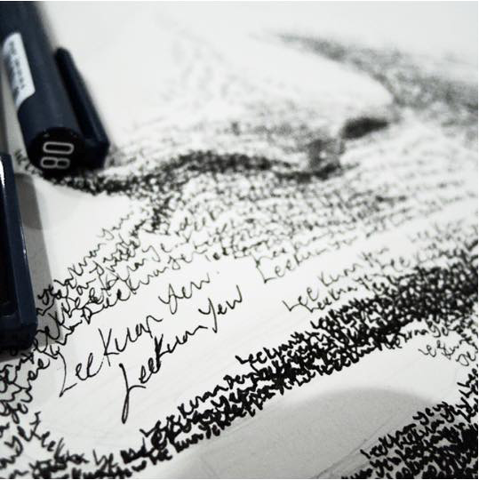 Artist Ong Yi Teck sketched what looks like a pretty cool, but normal portrait of Lee Kuan Yew...